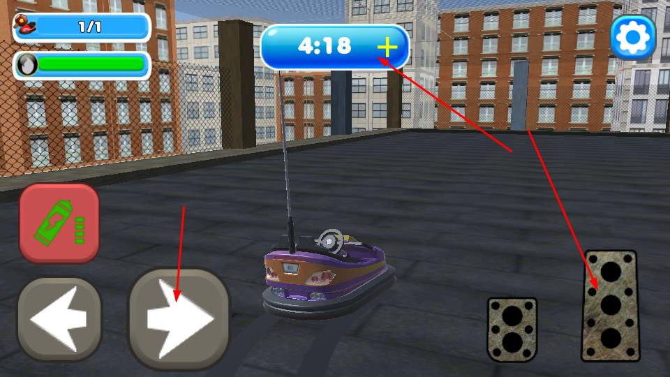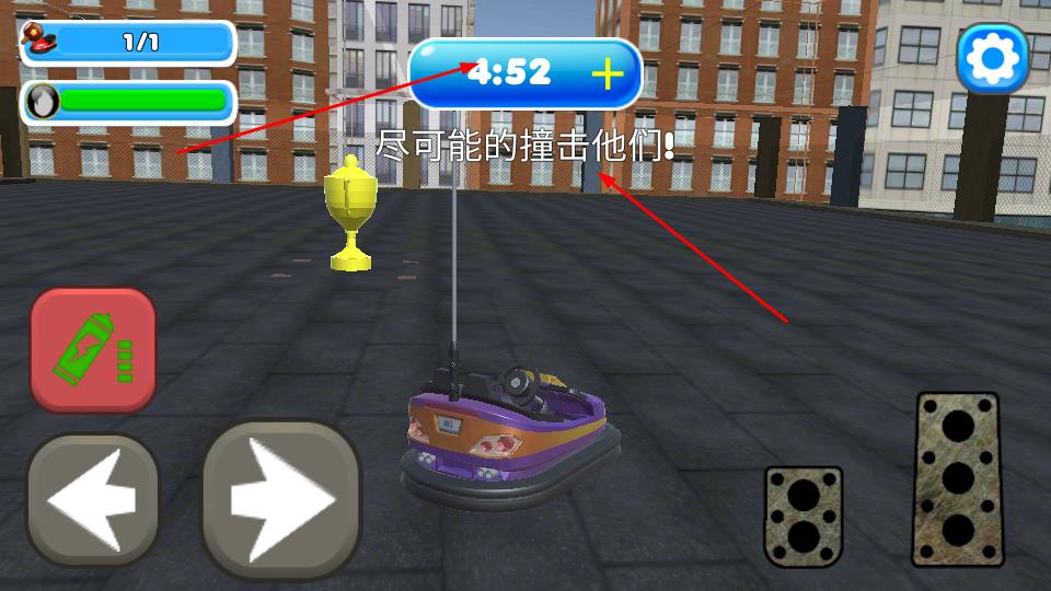 2、在赛场内通过左侧左右箭头按键控制机车转向,右侧按钮实现加速,利用4分52秒等限时,遵循尽可能撞击他们提示行动。