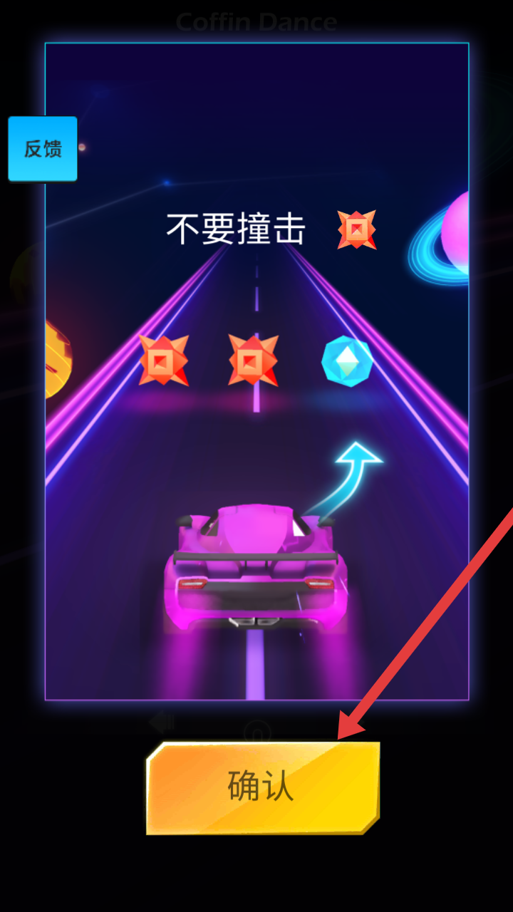 1、进入游戏,点击底部橙色确认按钮,进入音乐旋律的赛道,明确规避橙色星形障碍规则。
