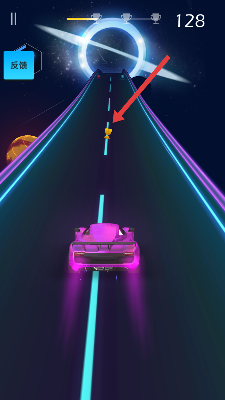 3、继续持续驾驶,捕捉到前方出现一个金色的奖杯,平稳靠近并拾取它,每一个关卡需要收集三个奖杯。