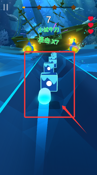 2、随着音乐节拍精准操控光球,击中有标记的节奏方块保持连击。