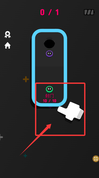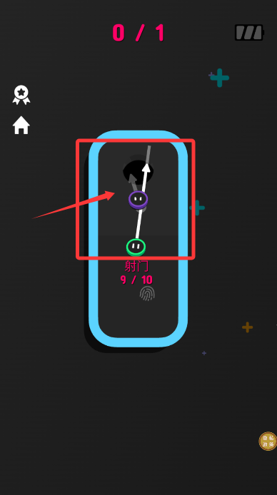 2、调整角度对准紫色靶心弹出小球,每次尝试需把握最佳时机。