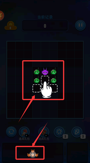 3、将底部图案拖拽至顶部网格的合适位置完成摆放,形成组合时自动消除。