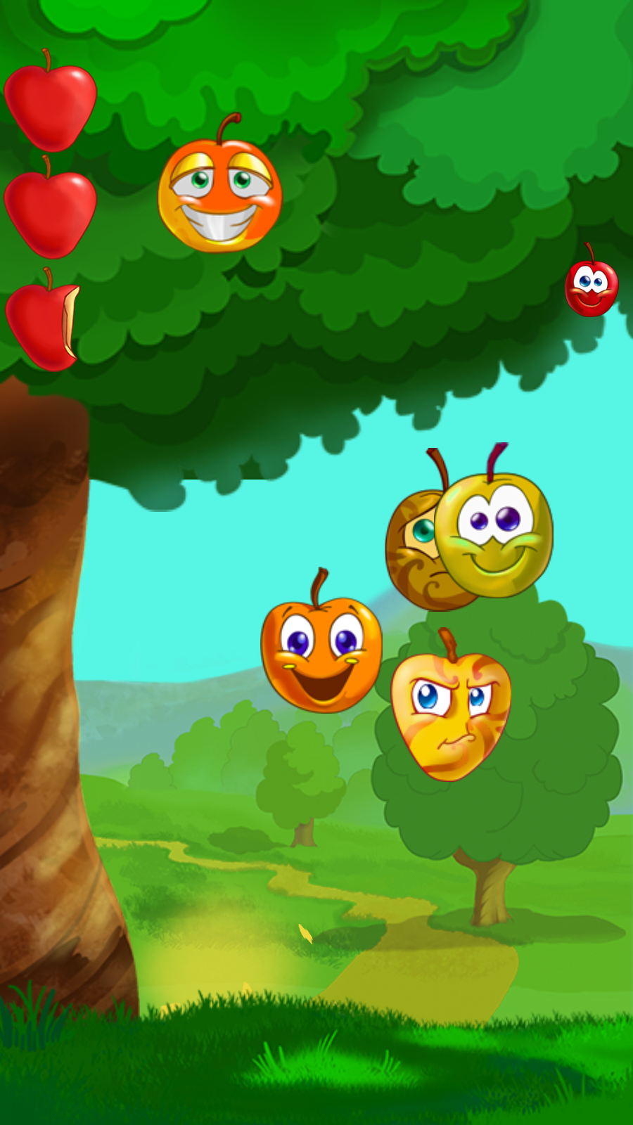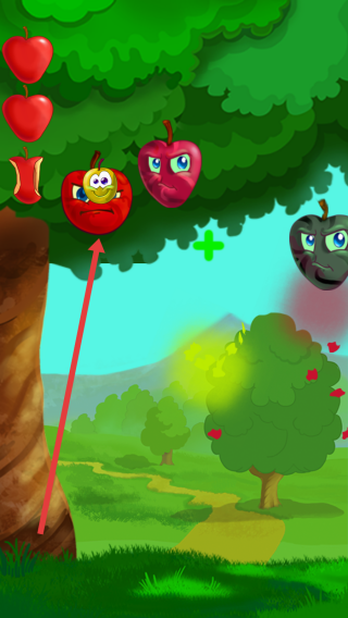 2、游戏内点击树上不同表情的苹果,通过精准点击收集它们,积累分数,应对苹果的变化与分布。