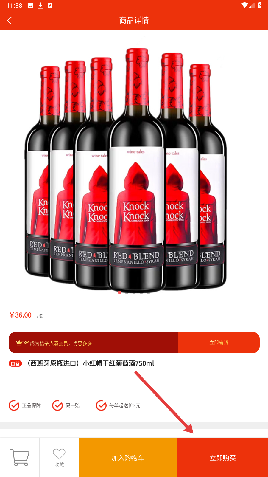 2、在红酒列表页,挑选心仪商品,点击进入商品详情页。