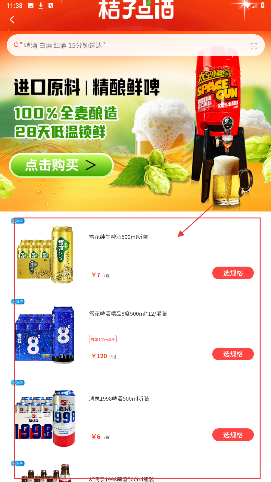 4、若选啤酒,从首页找对应啤酒分类,进入列表选品下单即可。