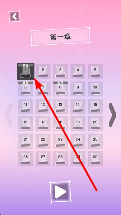 2、在章节选择界面,点击标有教程1的关卡,进入教学关卡,学习游戏基本操作与规则。