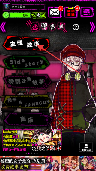 1、这是的游戏界面,点击主线故事按钮,即可进入游戏主线剧情,开启你的冒险之旅。