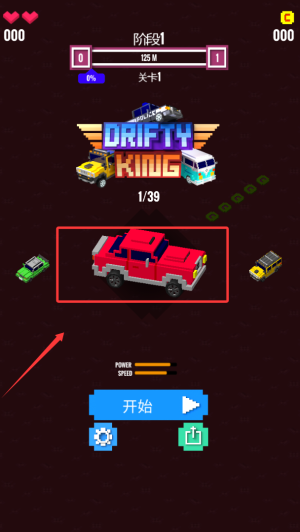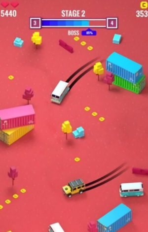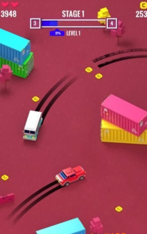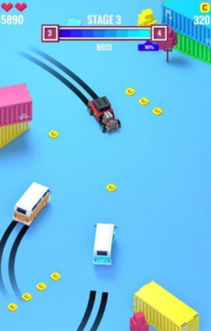 3、灵活操控小汽车躲避赛道上的障碍与陷阱,同时收集道具强化战力。