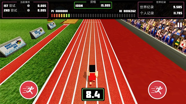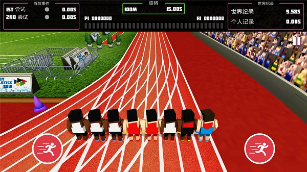 1、点击主界面点击开始,进入100米赛跑资格赛,在田径赛场操控中国红队服角色,准备挑战15.00S达标线。