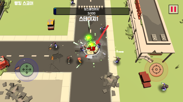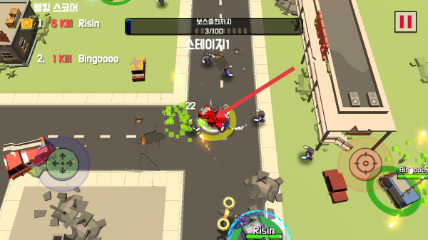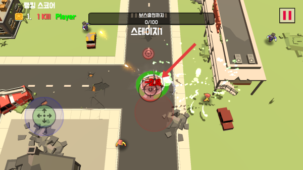 1、用左侧的摇杆来控制角色移动,右侧的按钮射击或者发射技能,优先攻击包围过来的敌人以及车辆。