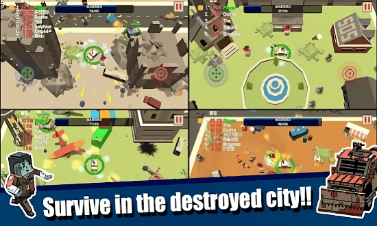 2、利用场景掩护障碍比如建筑、废墟躲避伤害,拾取绿色道具恢复或者增强攻击的火力,继续攻击敌人。