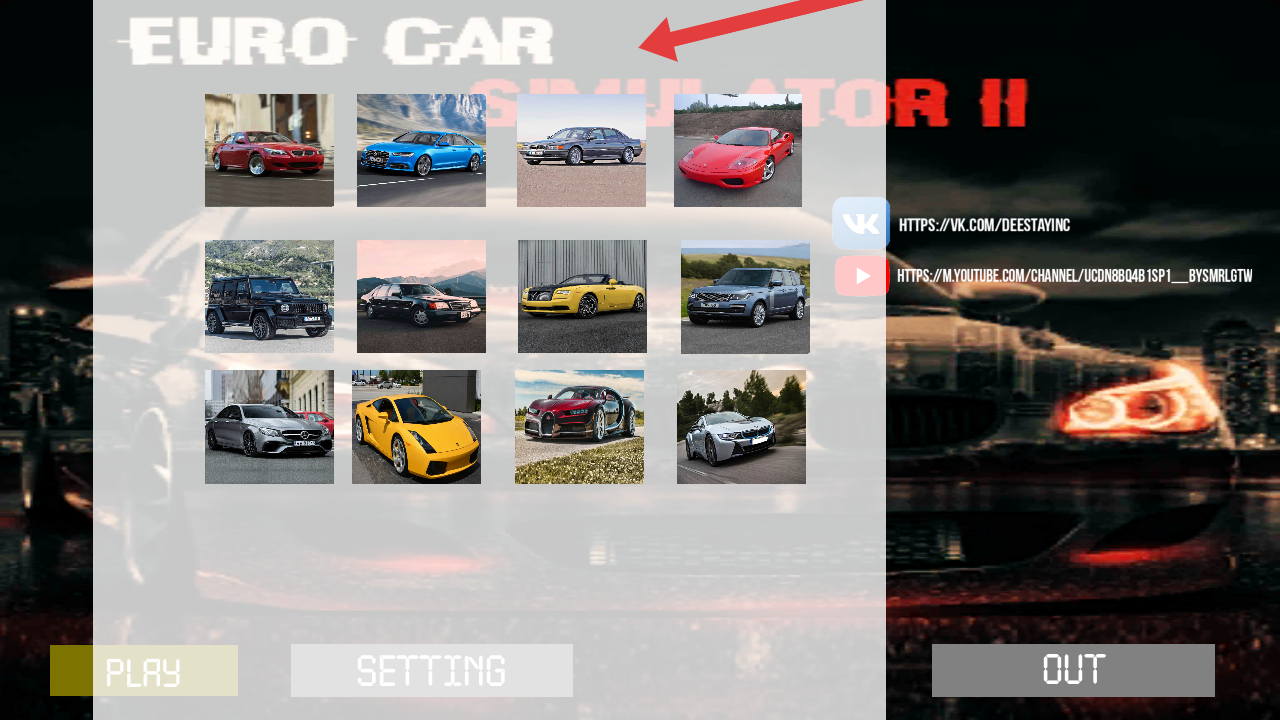1、进入游戏主界面,界面展示多辆欧洲的车型,选择其中一辆后,点击下方PLAY按钮,开启游戏。