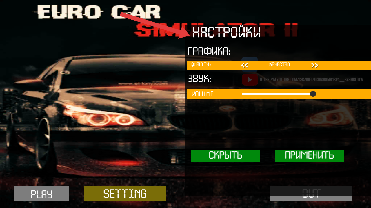 2、点击SETTING进入设置界面,可调节ГРАФИКА图形质量与ЗВУК声音音量,调整后按应用保存参数。