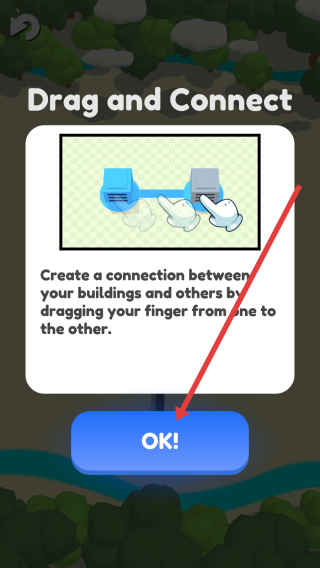 1、点击蓝色OK按钮,确认Drag-and-Connect的教程说明,进入游戏的建筑连接操作环节。