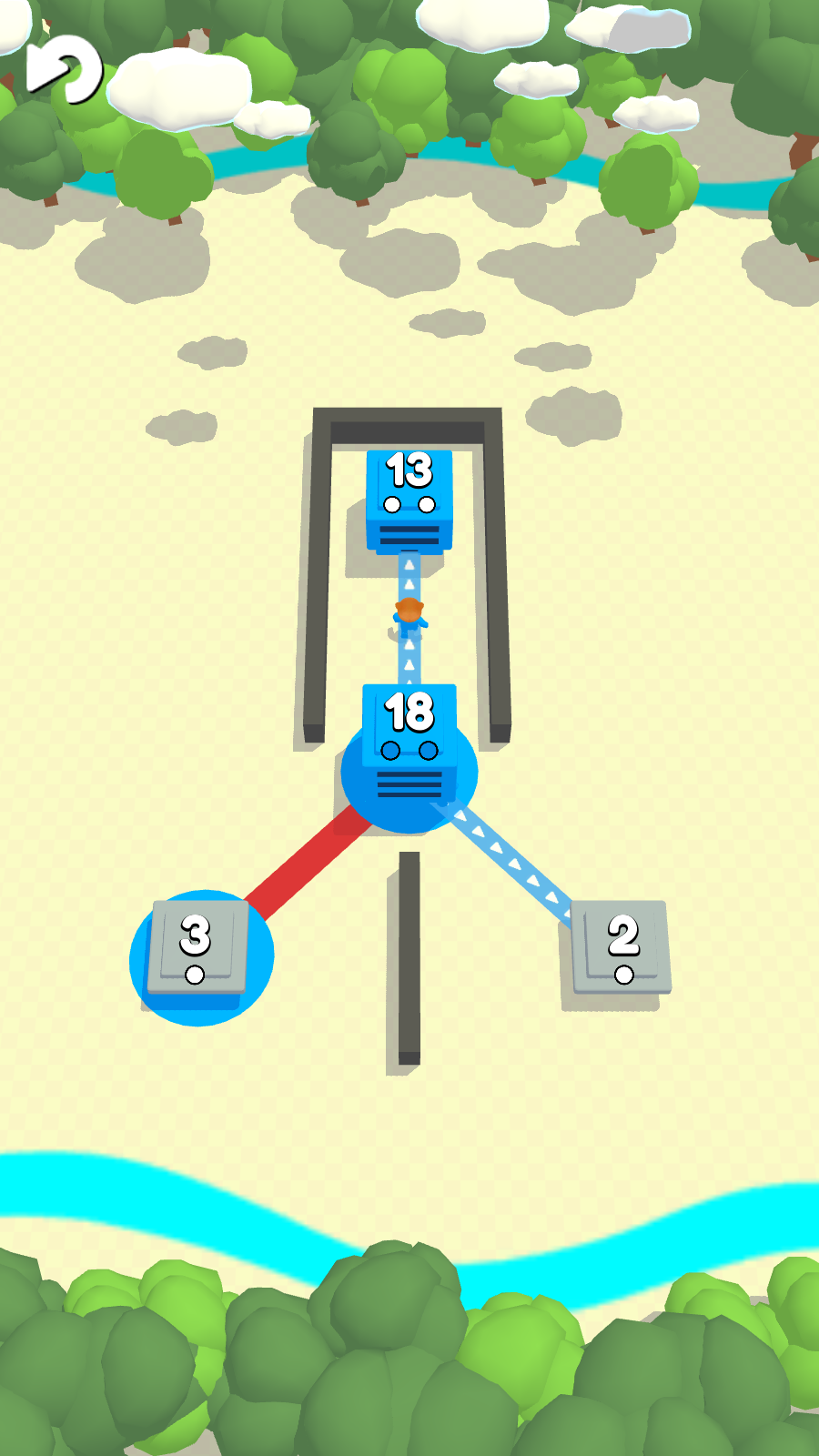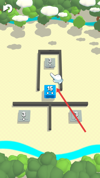 2、根据箭头的指示,拖动标有15的蓝色建筑,连接上方标有3的中立建筑,完成夺取,推动关卡进程。
