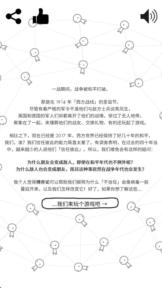 - 信任的进化拍照是一款富有哲思的深度益智作品,以信任的演变为主线,用简约动画勾勒出人际互动中的信任博弈,玩家将在一系列选择场景中,通过拍照记录不同
