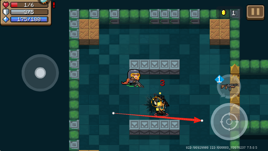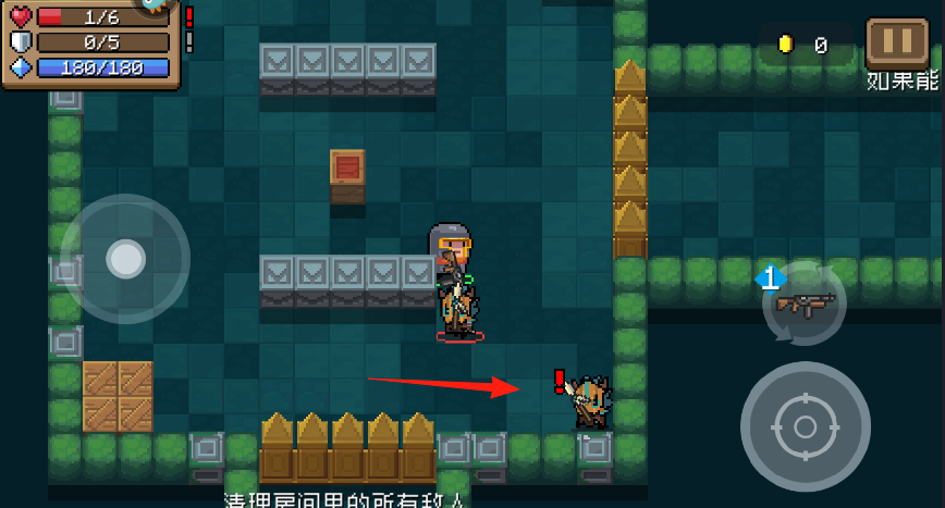 3、通过虚拟摇杆移动、射击键攻击,消灭所有敌人,完成房间清理,继续冒险。