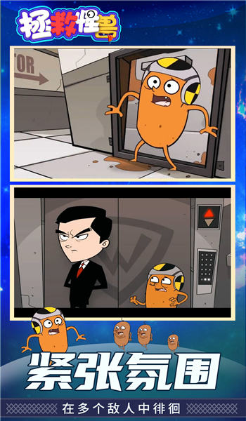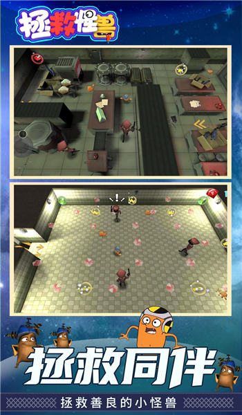 - 拯救怪兽是以冒险拯救为主题的作品,操作便捷,移动指尖即可进行,设有大量随机关卡,每一关都有不一样的玩法,过程中需要躲避敌人的追捕,还有大量精彩的