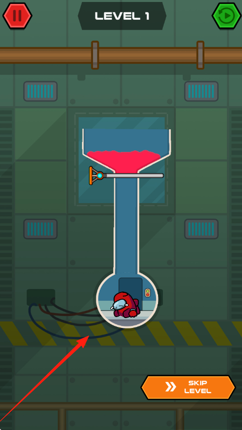 2、过程当中可以按照箭头指示,点击管道阀门橙色部件,使其移动,改变液体流向,引导液体避开太空人。
