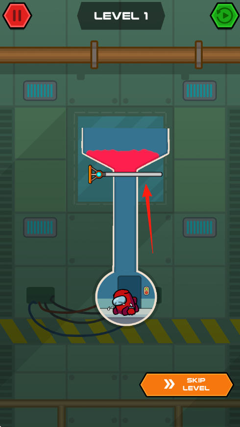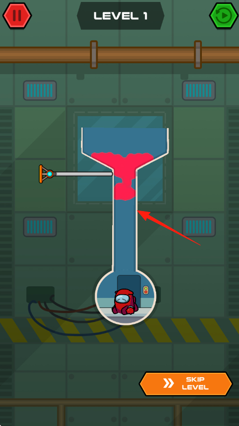 3、玩家要通过调整阀门位置,让红色液体沿安全路径流动,让太空人吸收液体存活,完成Level1。