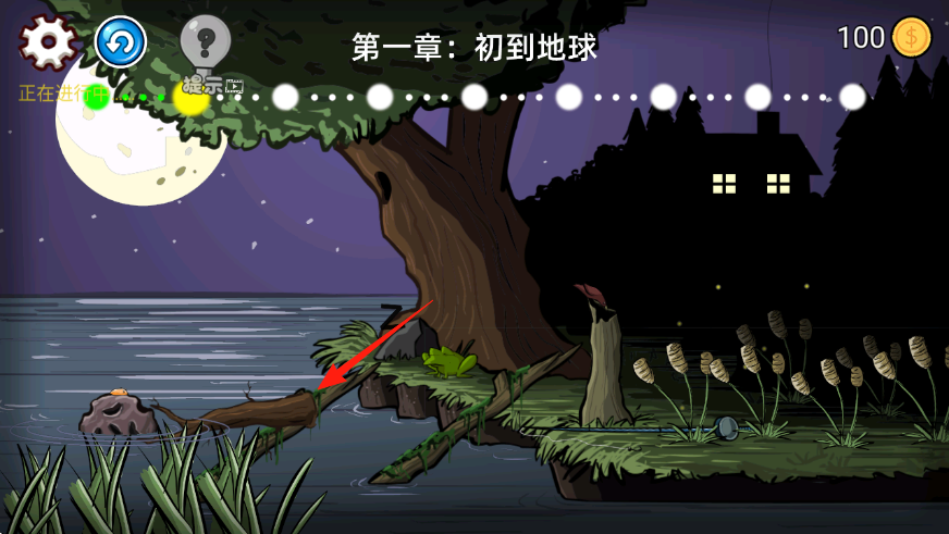 2、在河岸场景,点击道具如木头,帮助角色移动,完成上岸目标。