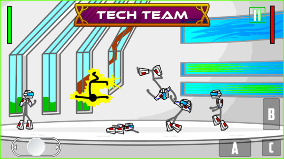 1、美术风格简约却不失张力,火柴人形象搭配夸张的物理效果,碰撞与技能特效呈现黑色幽默式视觉体验。