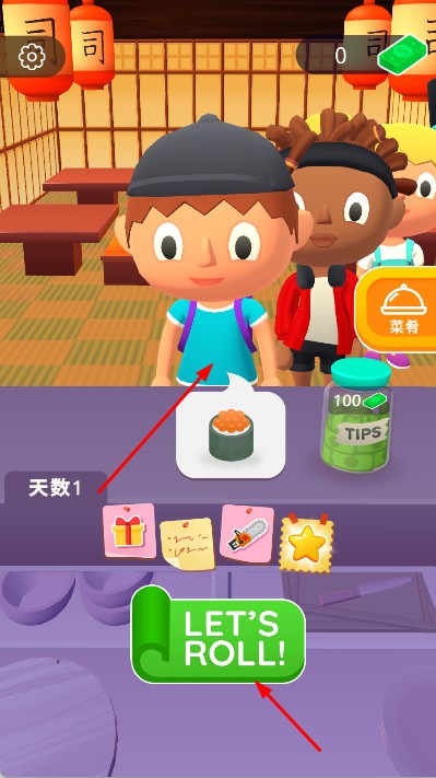 1、进入游戏,在初始界面中,点击绿色的LET’S ROLL按钮,开始制作寿司。