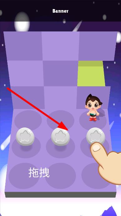 3、在关卡内,按提示“拖拽”中间的灰色星星按钮,移动道具,帮助角色推进,完成解谜或闯关任务。