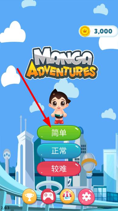 1、点击游戏主界面的简单难度按钮,选择简单模式,开启MANGA ADVENTURES的轻松冒险。