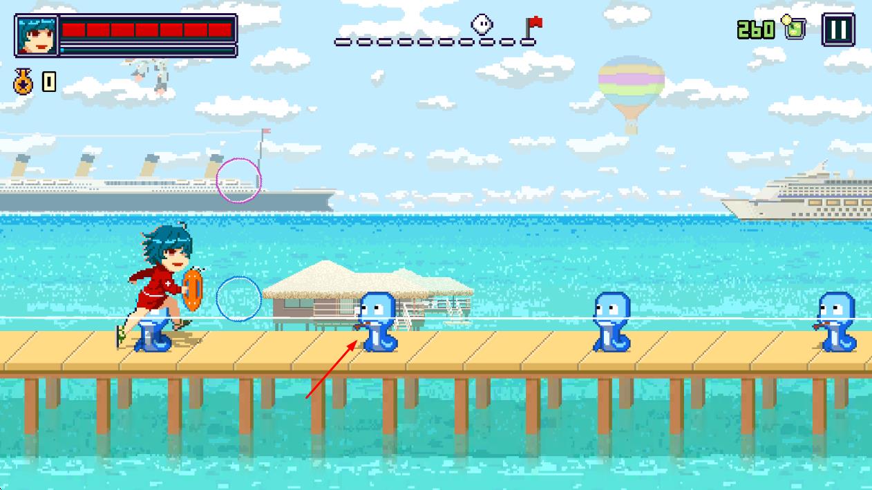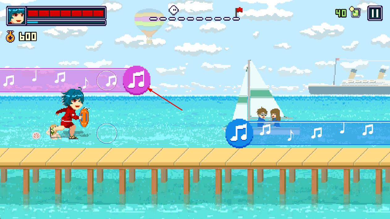 - 海滩节奏是一款以像素风格为特色的趣味动作闯关游戏,玩家将在充满夏日风情的海滩场景中开启冒险,玩法丰富多样,通过简单点击即可实现攻击、跳跃等操作,