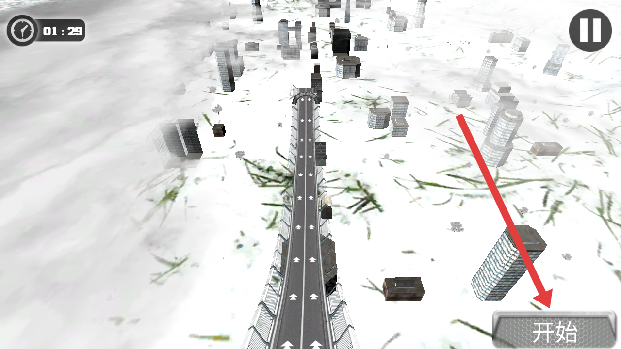 1、开局会展示赛道动画,可以直接点击界面右下角开始,进入雪地城市赛道,在倒计时1:29内开启挑战。