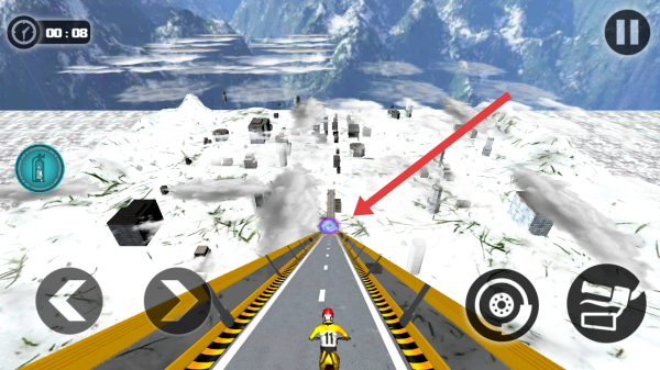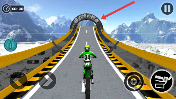 3、穿越传送门后,需要驾驶摩托沿着赛道进行前行,抵达标有终点的拱门,完成关卡的挑战。
