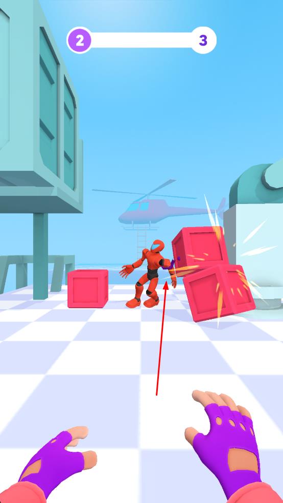 2、在攻击过程中,利用绳索破坏红色方块障碍,同时持续瞄准机器人发起进攻,为通关清除阻碍。