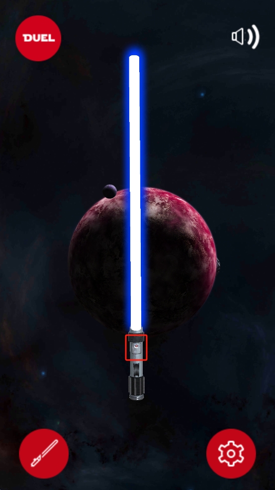 1、进入游戏界面,看到光剑剑柄,点击剑柄可触发光剑剑身展开,需留意光剑激活状态,为后续操作做准备。