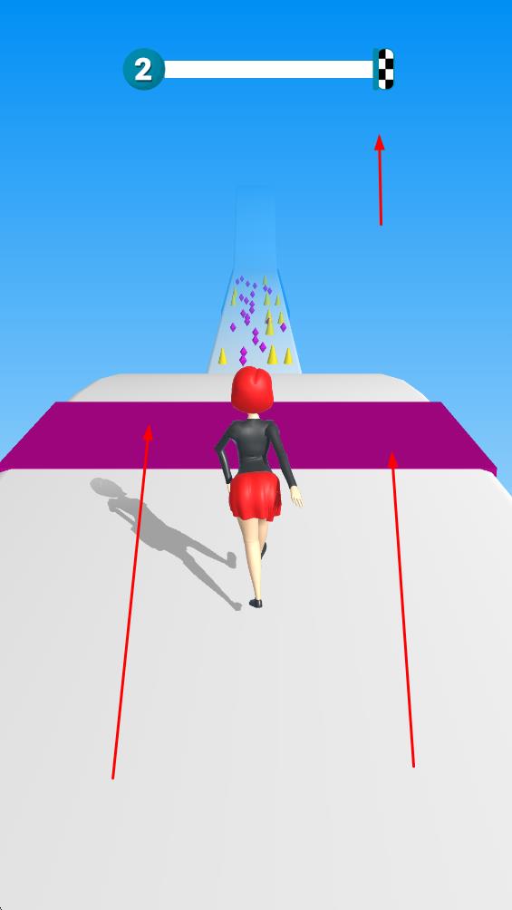 1、操控角色奔跑闯关:操控美女角色在不同场景中奔跑,通过简单的方向控制、跳跃等操作移动,目标是在规定路线中抵达终点,基础操作易上手,适合快速投入。