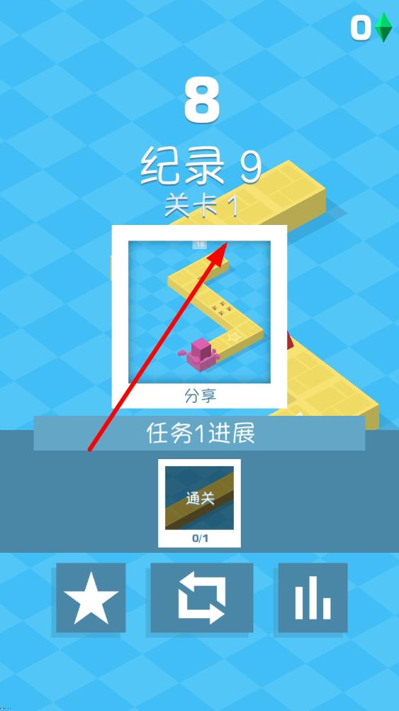 1、进入游戏后选择喜欢的模式,角色位于初始位置,观察前方下落的障碍物类型与速度,准备通过操控开启躲避挑战。