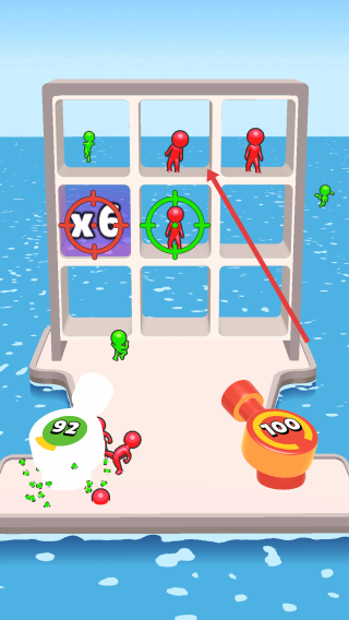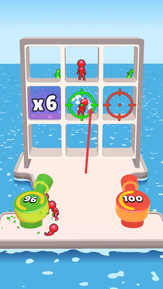 3、紧盯红小人移动,瞄准新出现的红小人,配合乘6倍数方块,用炮台集火,快速削减敌方数量。
