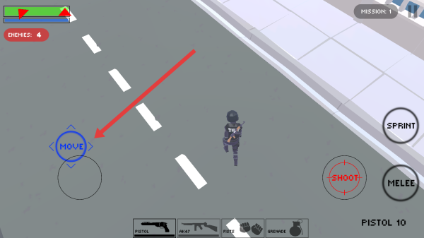 3、在任务关卡中,点击左侧MOVE按钮操控SWAT角色移动,靠近敌人,推进任务进程。