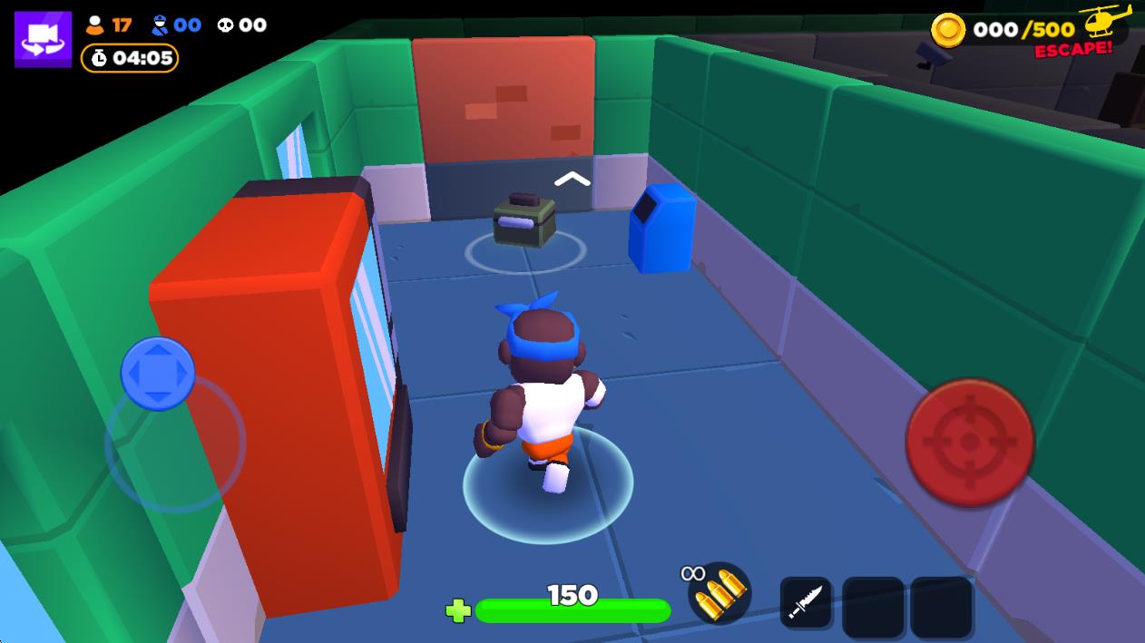 3、多角色对抗玩法:支持多名玩家实时在线竞技,既有囚犯间的激烈火拼,也有监狱守卫的随机追捕,大幅增加生存挑战复杂度。