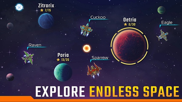 3、消耗能源晶体升级飞船引擎与武器系统,提升航行速度与战斗火力压制。