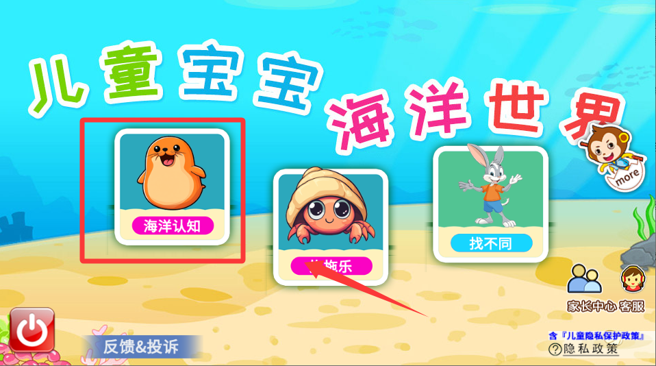 3、观看有趣的动画小故事、学习海洋生物的生活习性。家长可陪同孩子一起玩、在互动中提升孩子的观察力和知识储备。