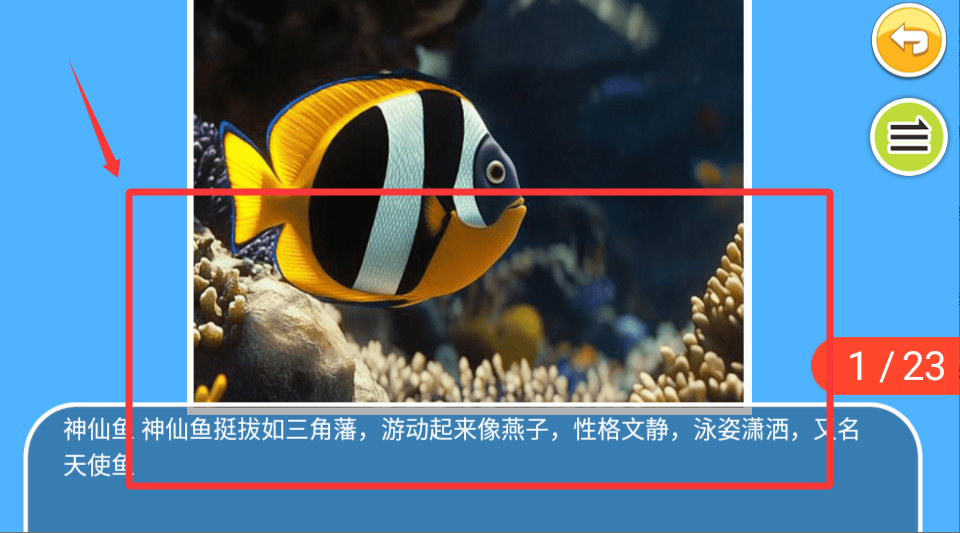 1、进入游戏后先选择想探索的海洋区域、点击不同的海洋生物了解它们的名字和特征。通过简单互动认识鱼、海豚等常见动物。
