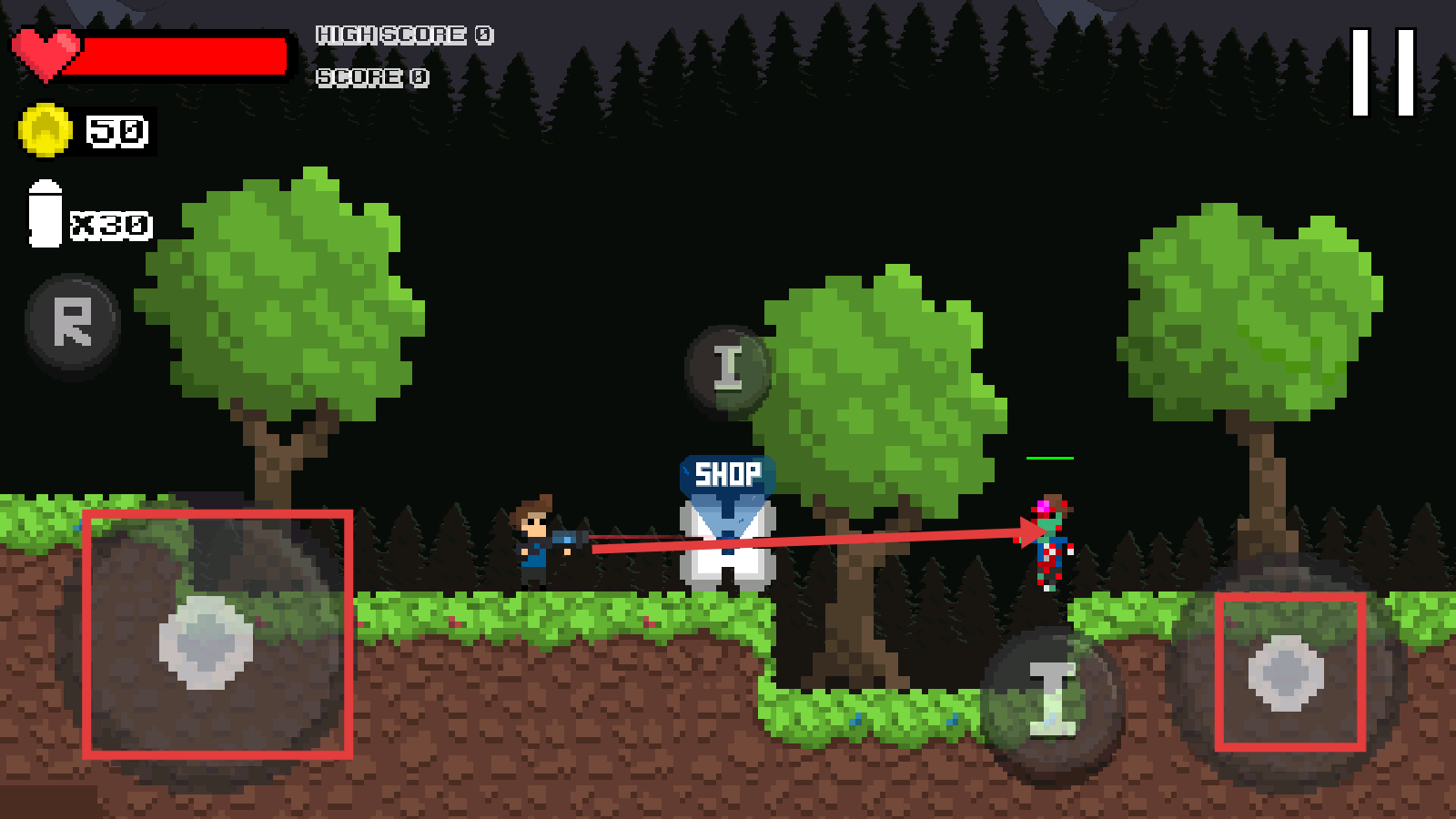 2、挑战中通过左侧虚拟摇杆控制角色移动,右侧按键触发射击/交互(如靠近【SHOP】时操作),推进探索进程。