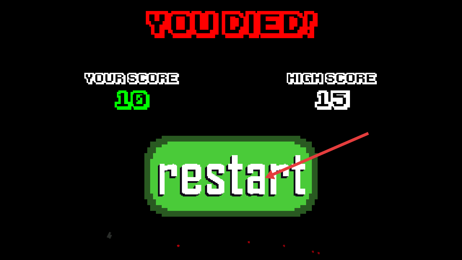 4、若触发【YOUDIED!】结局,点击【restart】按钮重新挑战,积累战斗经验,尝试突破【HIGHSCORE】记录。