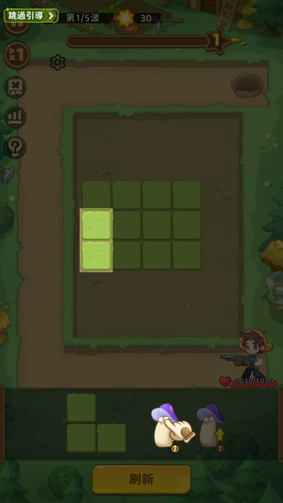 2.按照新手指引拖动植物放在场地格子中。