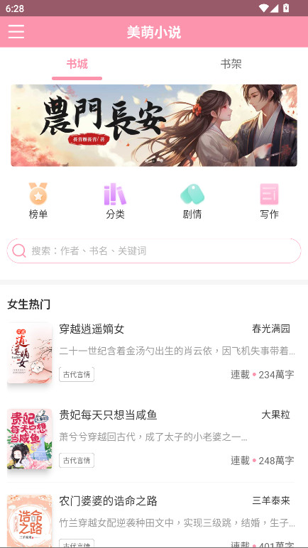 美萌小说app汇集了各类热门和经典的小说资源,无论是都市言情、玄幻仙侠,还是悬疑推理,您都能在这里找到心仪的作品。如果您正在寻找一款资源丰富且使用友好的小说阅读软件,那就快来下载并体验美萌小说吧。软件内包含了非常多不同题材的小说,都市、言情、校园、总裁、穿越、架空、历史、仙侠、武侠等等十余种小说题材,想看啥就看啥。