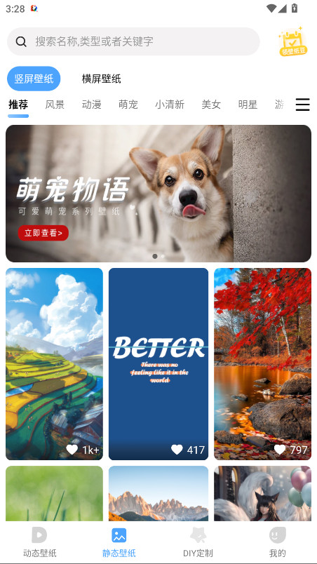 小鸟壁纸app简直就是壁纸界的百宝箱。不管你喜欢什么样的风格,是小清新、科幻大片,还是萌萌哒的小动物,在这里都能找到让你眼前一亮的壁纸。而且,我们每天都会上新,保证你的手机壁纸天天不重样,让你的手机永远充满新鲜感。操作起来也特别简单,界面清爽,没有乱七八糟的广告。看到喜欢的壁纸,点一下就能设成桌面,全程丝滑流畅,一点儿不卡顿。我们还特别优化了壁纸的质量,每一张都是高清大图,让你的屏幕看起来更清晰、更漂亮。