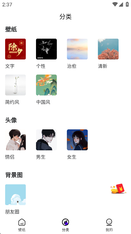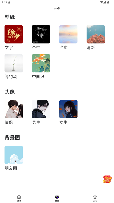 3.选择感兴趣的类别后可以获得大量的壁纸