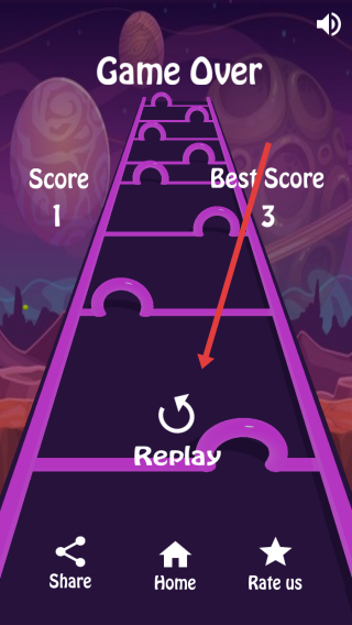 3、游戏结束后,可以通过点击Replay按钮重新开始,调整操作策略,尝试突破最佳分数3的记录。