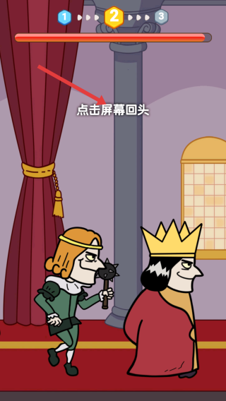 3、看到点击屏幕回头的提示,快速的点击屏幕,触发相关的互动,躲避国王的怀疑,维持刺杀机会。